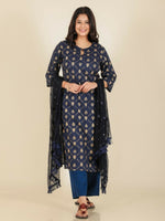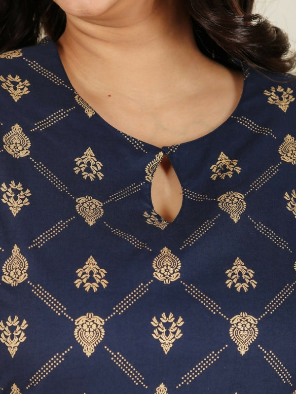 Aramya Straight Soft Cotton Floral Print Women's Kurta Set - BlueElevate your style with our uniquely designed kurta set, perfect for daily wear or...