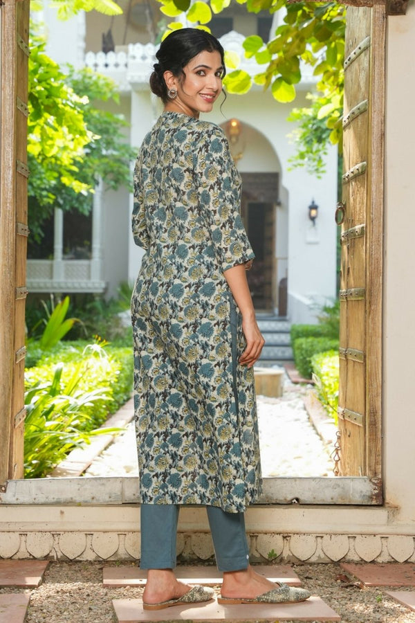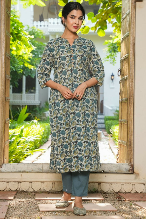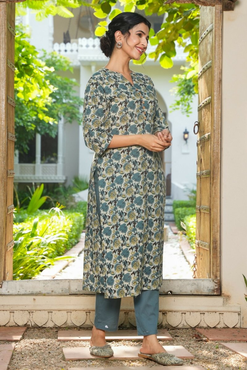 Aramya Straight Soft Cotton Floral Print Women's Kurta Set - GreyElevate your style with our uniquely designed kurta set, perfect for daily wear or...