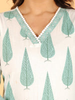 Aramya Straight Soft Cotton Floral Print Women's Kurta Set - White