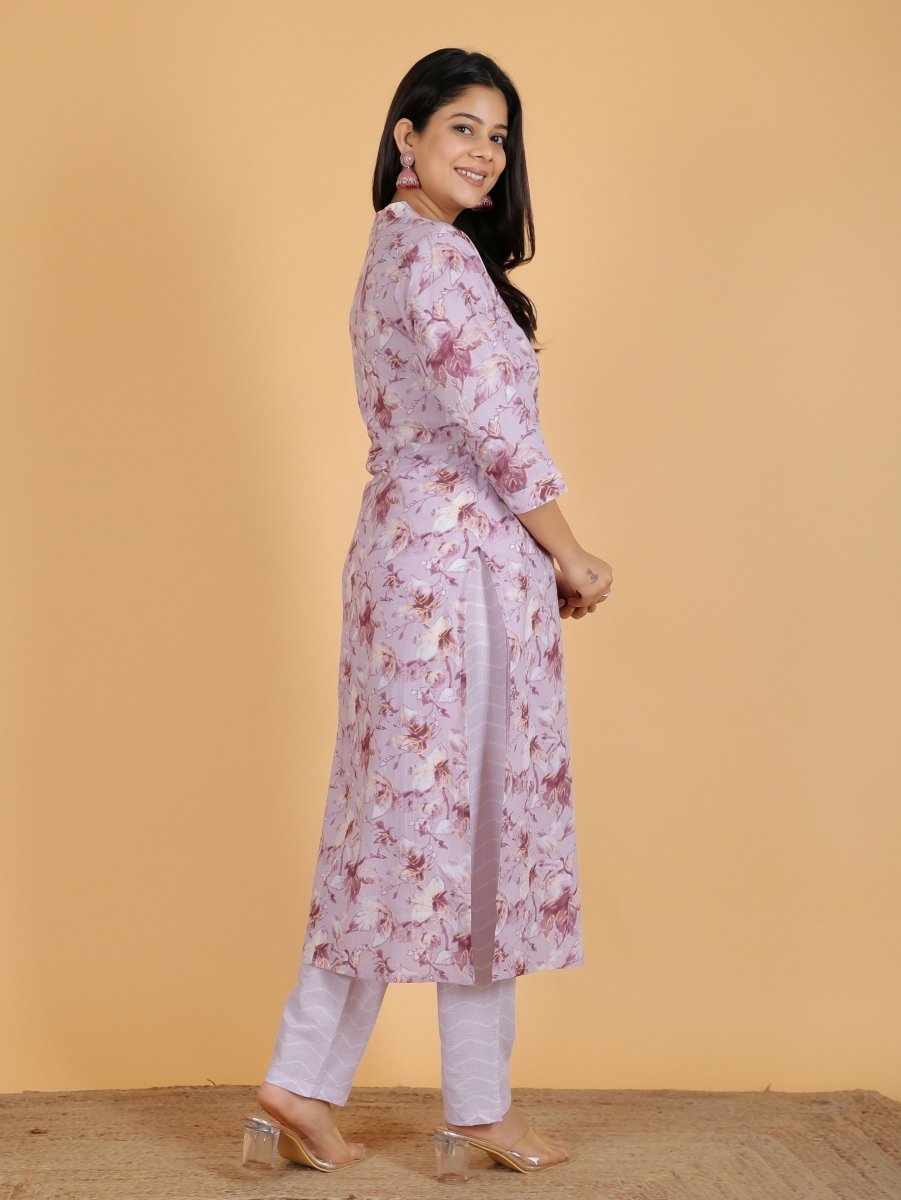 Aramya Straight Soft Cotton Gold foil Print Women's Kurta Set - Purple