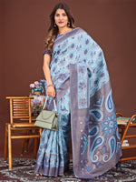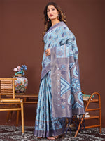 Astita Grace in Every Thread: Sky Blue Patola Linen Cotton Saree Woven with Cultural Elegance - Distacart