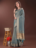 Elevate your ethnic charm with this exquisite Sea Green organza saree adorned with a shimmering golden zari border and pallu. Crafted with lightweight yet durable organza fabric, this saree is designed to drape like a dream—adding an aura of sophistication and style. Whether it's a festive celebration, a formal gathering, or a stylish day out, this saree fits every occasion with effortless grace. Comes with an unstitched matching blouse piece to complete the ensemble.