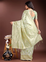 Astita Light Green Linen Cotton Saree - Elegant Simplicity for Everyday Grace - Distacart