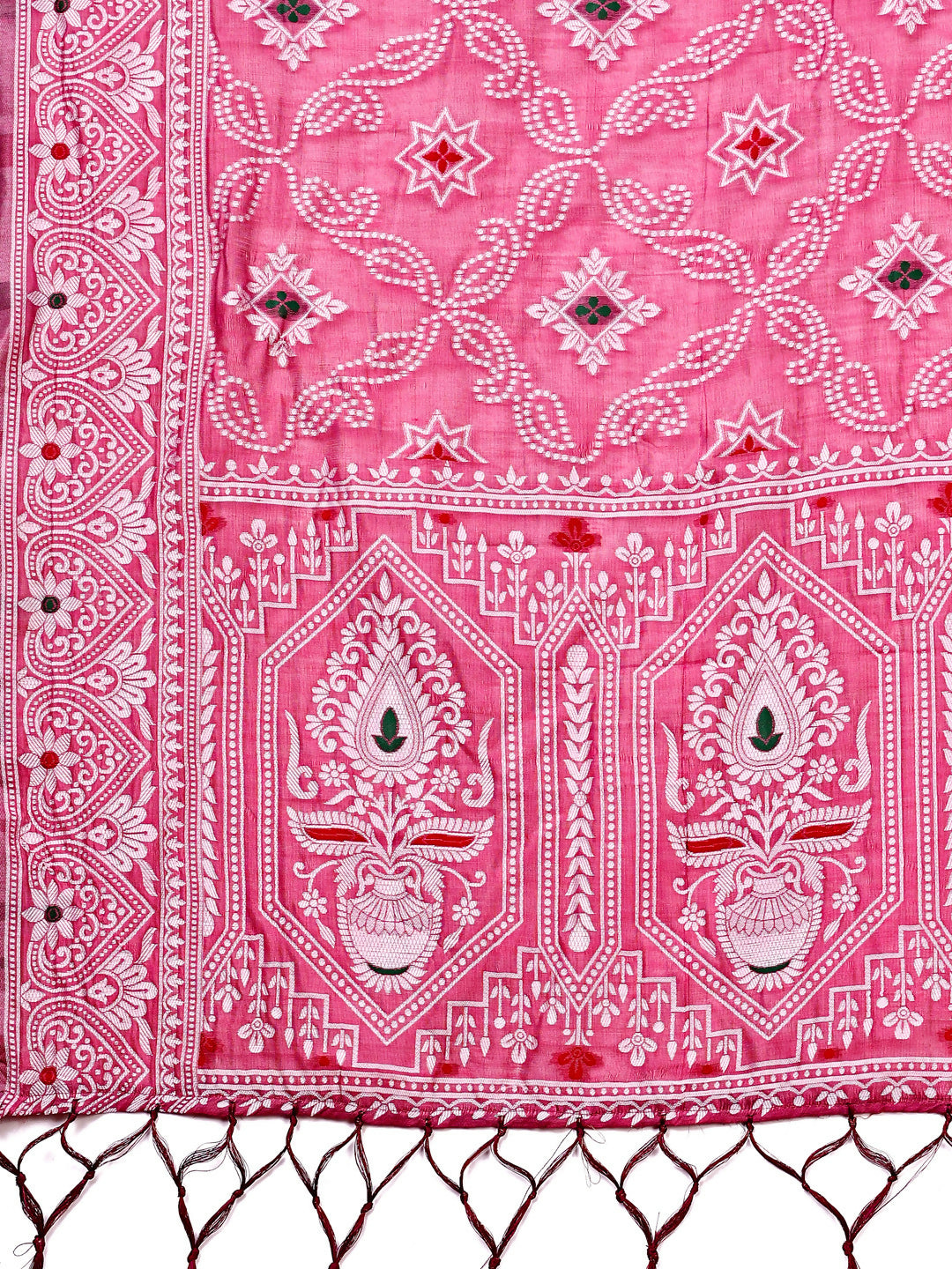 Astita Pankhuri Pink Linen Cotton Saree Color : Pink Saree Fabrics : Linen Cotton Blouse Fabrics : Linen Cotton Saree Length : 5.5 Meter Blous...