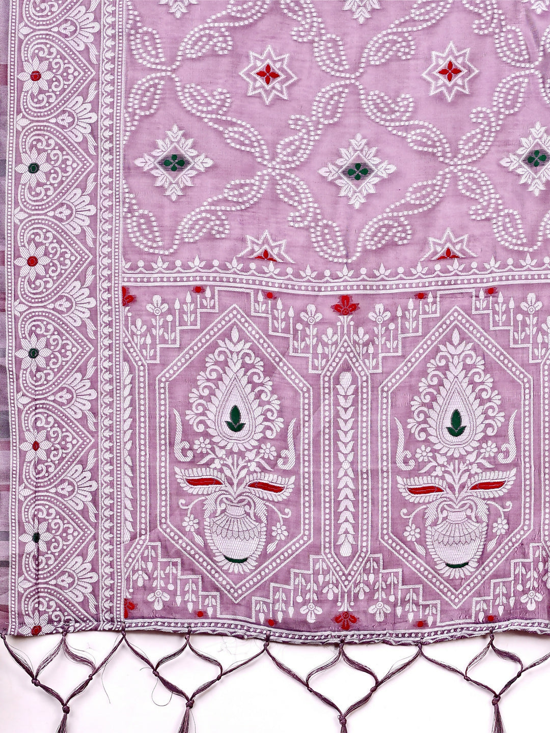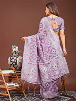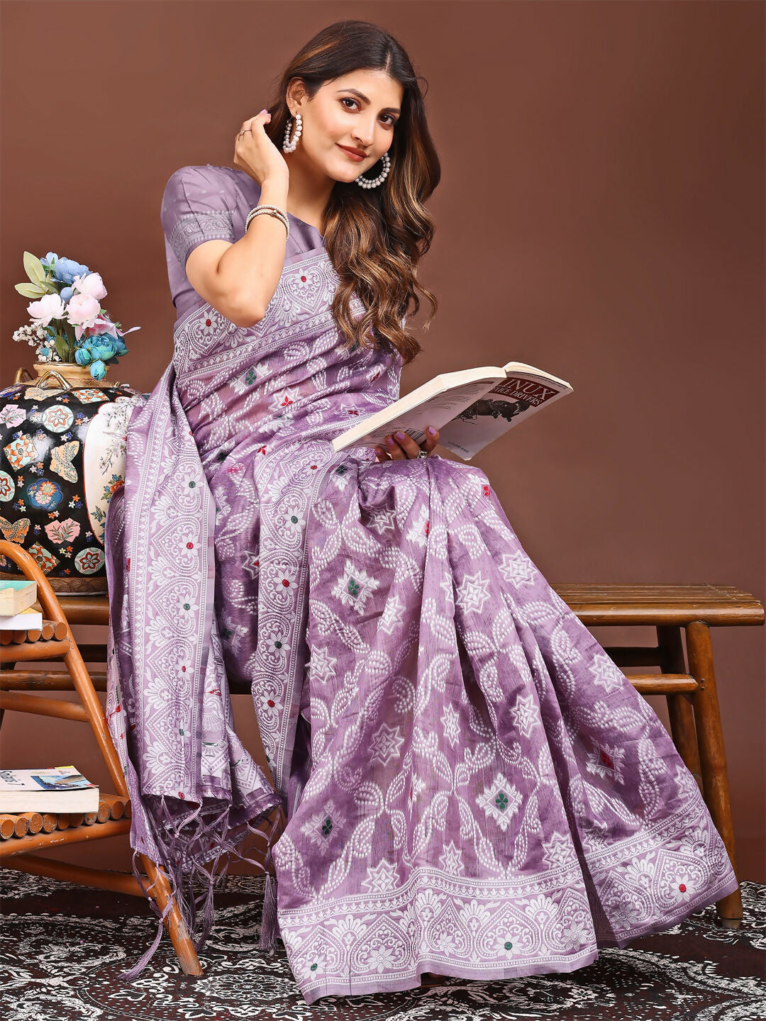 Astita Pankhuri Purple Linen Cotton Saree Color : Purple Saree Fabrics : Linen Cotton Blouse Fabrics : Linen Cotton Saree Length : 5.5 Meter B...