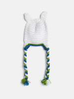 Chutput Kids Woollen Hand Knitted Cat Detail Cap - White