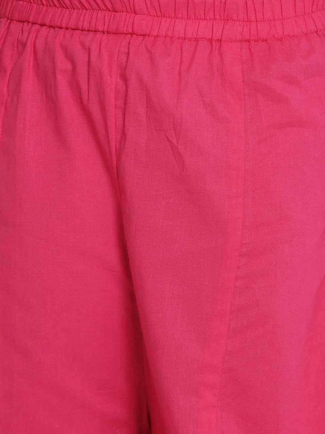 NOZ2TOZ Fuchsia Pink & Gold Printed Kurta & Palazzo Set For Girls