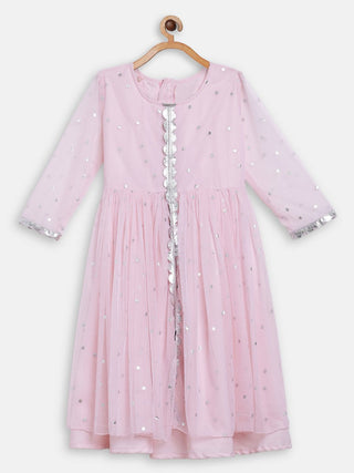 Ahalyaa Pink Crepe Front Slit Girl's Kurta