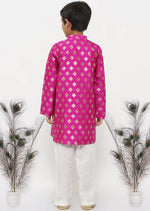 Little Bansi Banarsi Silk Sherwani & Pyjama - Magenta & Cream