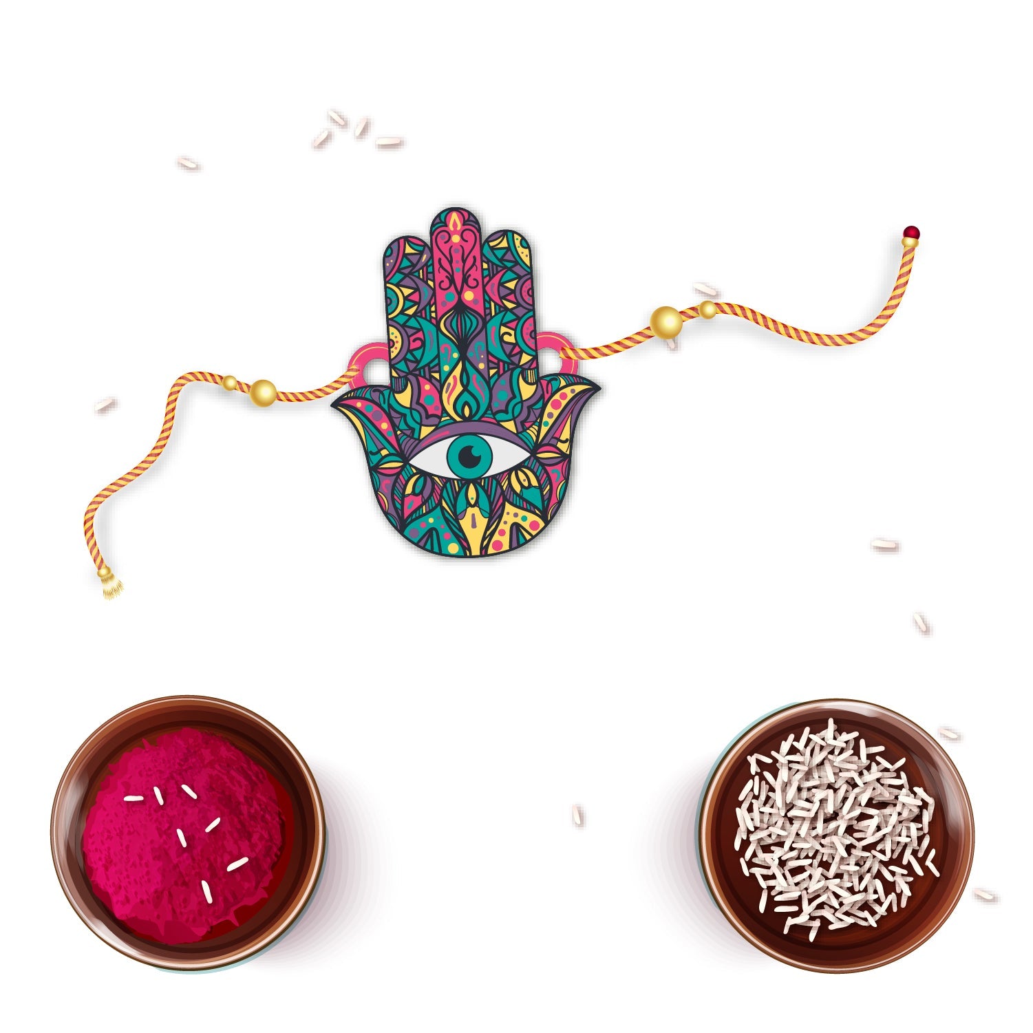 Indianvibez Protective Hamsa Rakhi, Wooden Rakhi with Rudraksha Thread - Kids Rakhi