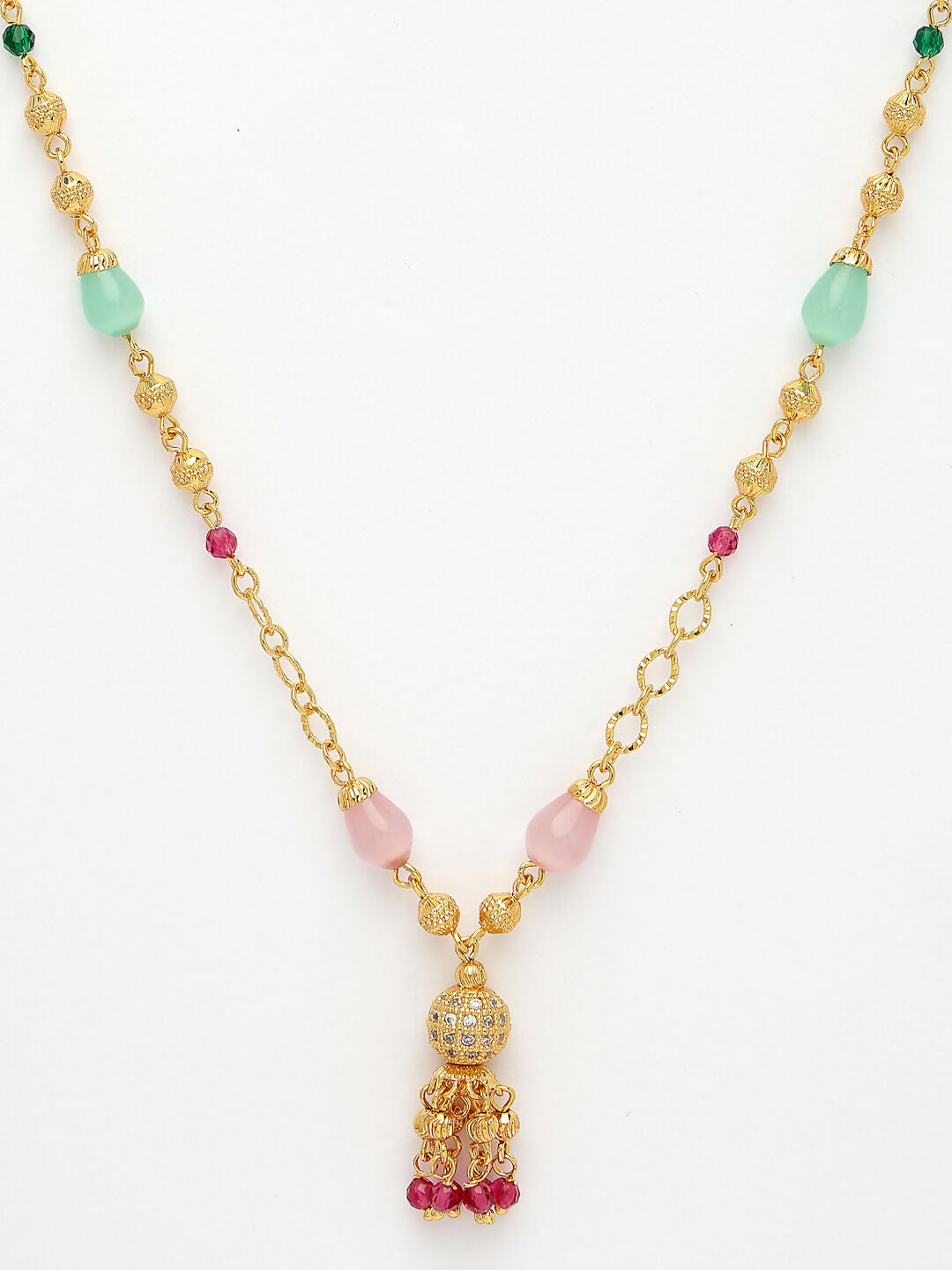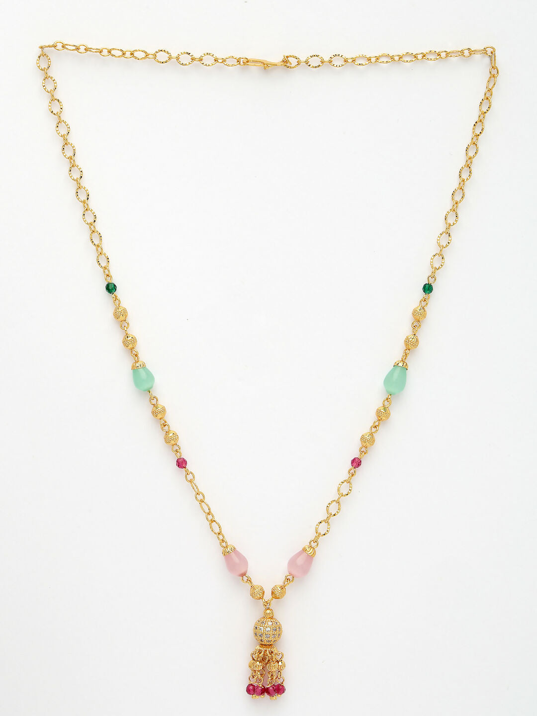 • Style Note: The NVR Women Multicolor Gold-Plated Minimal Chain is a versatile and stylish accessory that adds a touch of vibrancy to any outfit. Crafted with high-quality materials and plated in gold, this chain features a minimalist design with multiple colors incorporated into its links or accents. This combination of colors makes it an eye-catching piece that can complement various styles and occasions. Whether worn alone for a subtle statement or layered with other necklaces for a trendy look, this chain enhances your ensemble with its elegant and modern appeal. Ideal for those who appreciate versatility and elegance in their jewelry collection.