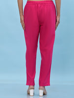 Juniper Women's Fuchsia Solid Cotton Pants with Partially Elasticated Waistband and Two Side Pockets - Distacart