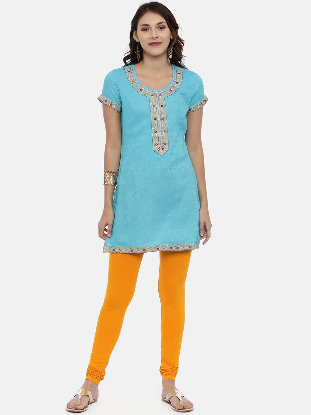 Souchii Mustard Yellow Solid Slim-Fit Churidar-Length LeggingsMustard yellow solid slim-fit churidar-length leggings, has an elasticated wiastband,...