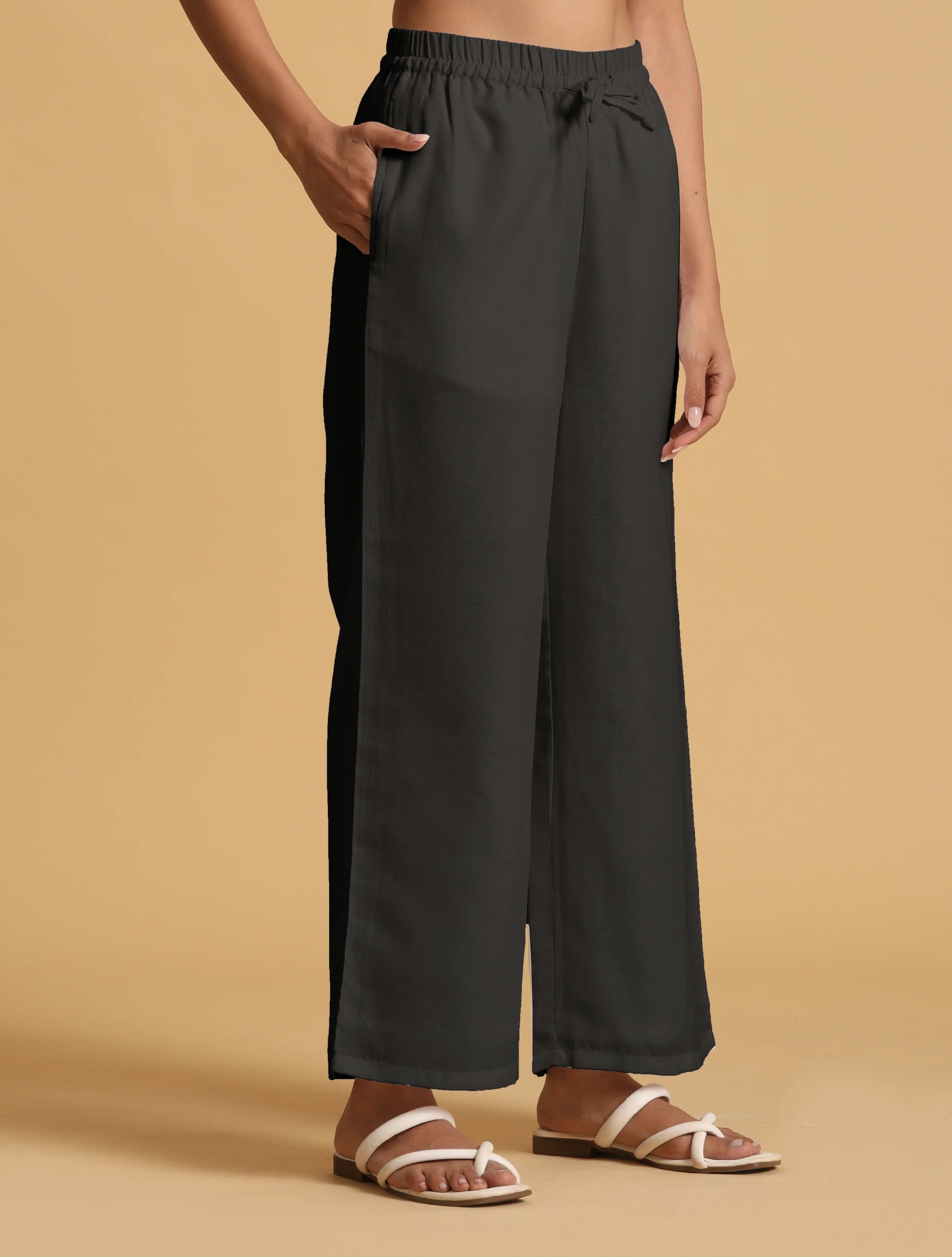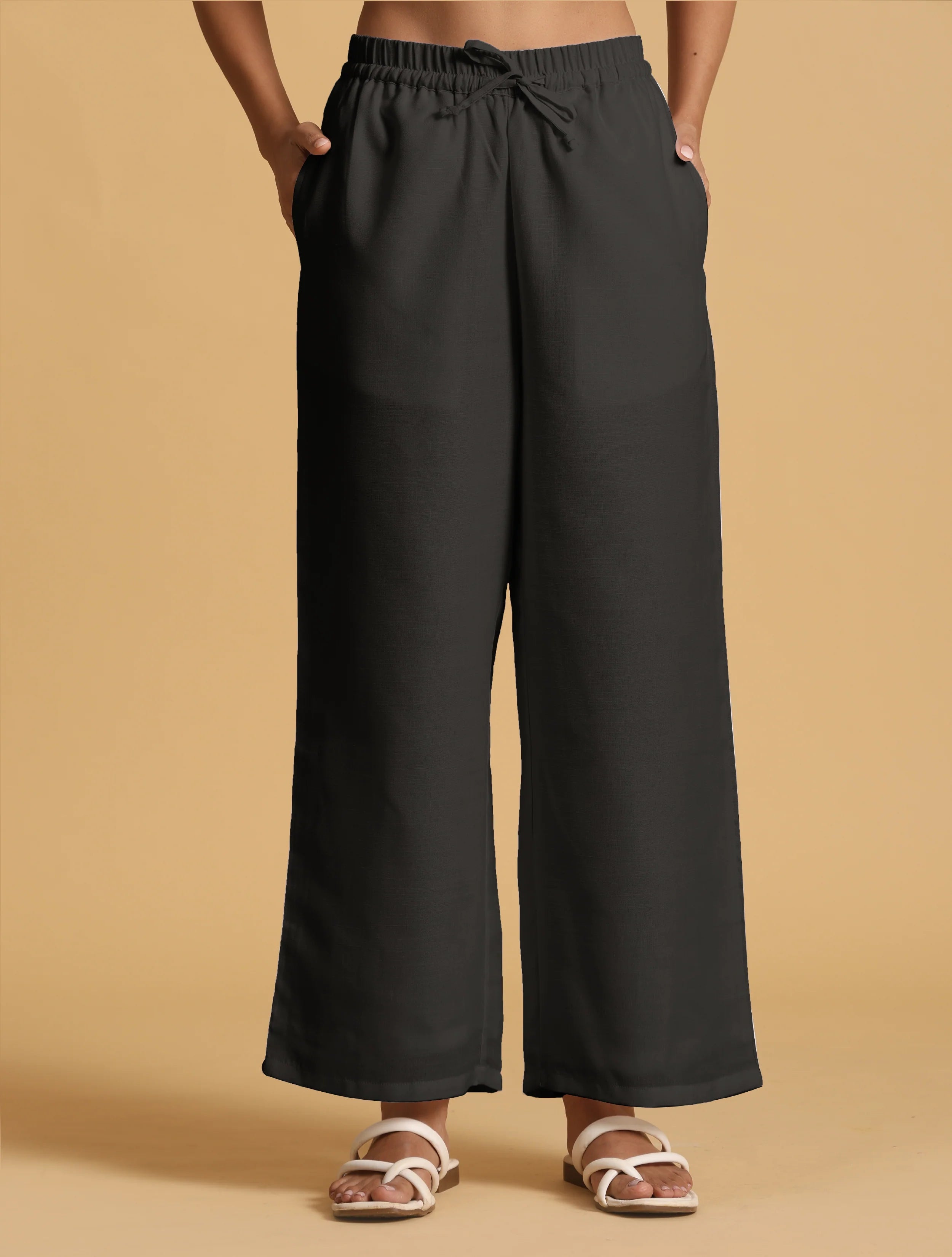 • Elevate your style with this black solid bottom. Style it with your own Kurta/Top to complete the look.