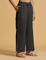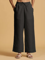 trueBrowns Black Cotton Blend Elasticated Drawstring Straight PantsDescription Elevate your style with this black solid bottom. Style it with your ...