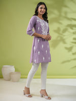 Janasya Lavender Cambric Embroidered Tunic - Distacart