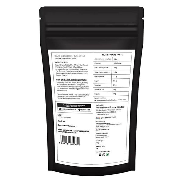 Green Sun Low Carb Almond Cookies are made from a special Superfoods seeds formulation that makes them ultra-low carb, while keeping our Cookies as healthy snacks that are high on fibre and nutritious.It is perfect vegetarian Snack and munching Options for a Keto Diet along with Paleo Diet, Atkins Diet and Vegan Diet. GUILT FREE COOKIES :Now following a diet is so easy with Low Carb Cookies option available for Munching. Get Health & Fitness, without compromising on your Favourite Foods.