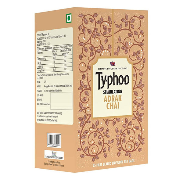 Typhoo Stimulating Adrak Chai Tea BagsIngredients:Enjoy your brew enriched with Assam tea and ginger.Directions to Use:Use one typhoo teabag per cu...