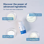 • Formulated with AHA and BHA for underarm application