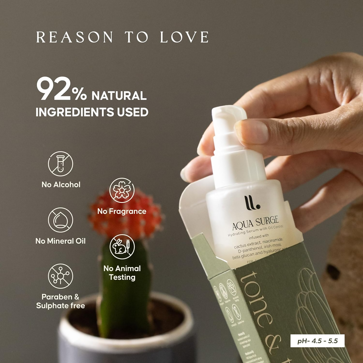 • Cactus Extract, Niacinamide, Hyaluronic Acid, D-Panthenol, Irish Moss