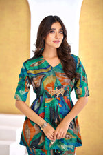 BulBul Kalki Green Chanderi Co-Ord SetAbout the product: Top Pack Contains: 1 Top, 1 Bottom Length of Kurta: Hip Top Style: Straight Top Fabric...