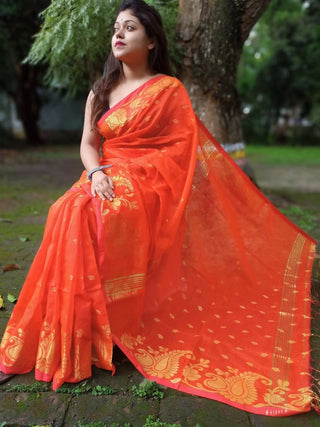 Exclusive Collection Orange Beautiful Cotton Silk Saree