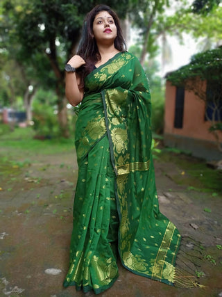 Exclusive Collection Deep Green Beautiful Linen Jamdani Saree