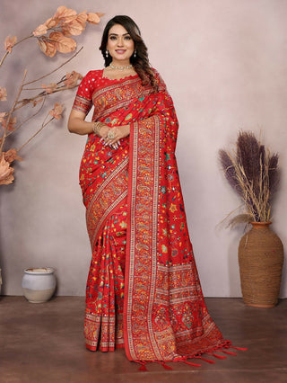 Joban Fashion Red Meena Weaves Pashmina Sarees