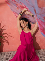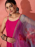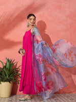 InWeave Fuchsia Strappy Set With Blue Fuchsia Organza Dupatta