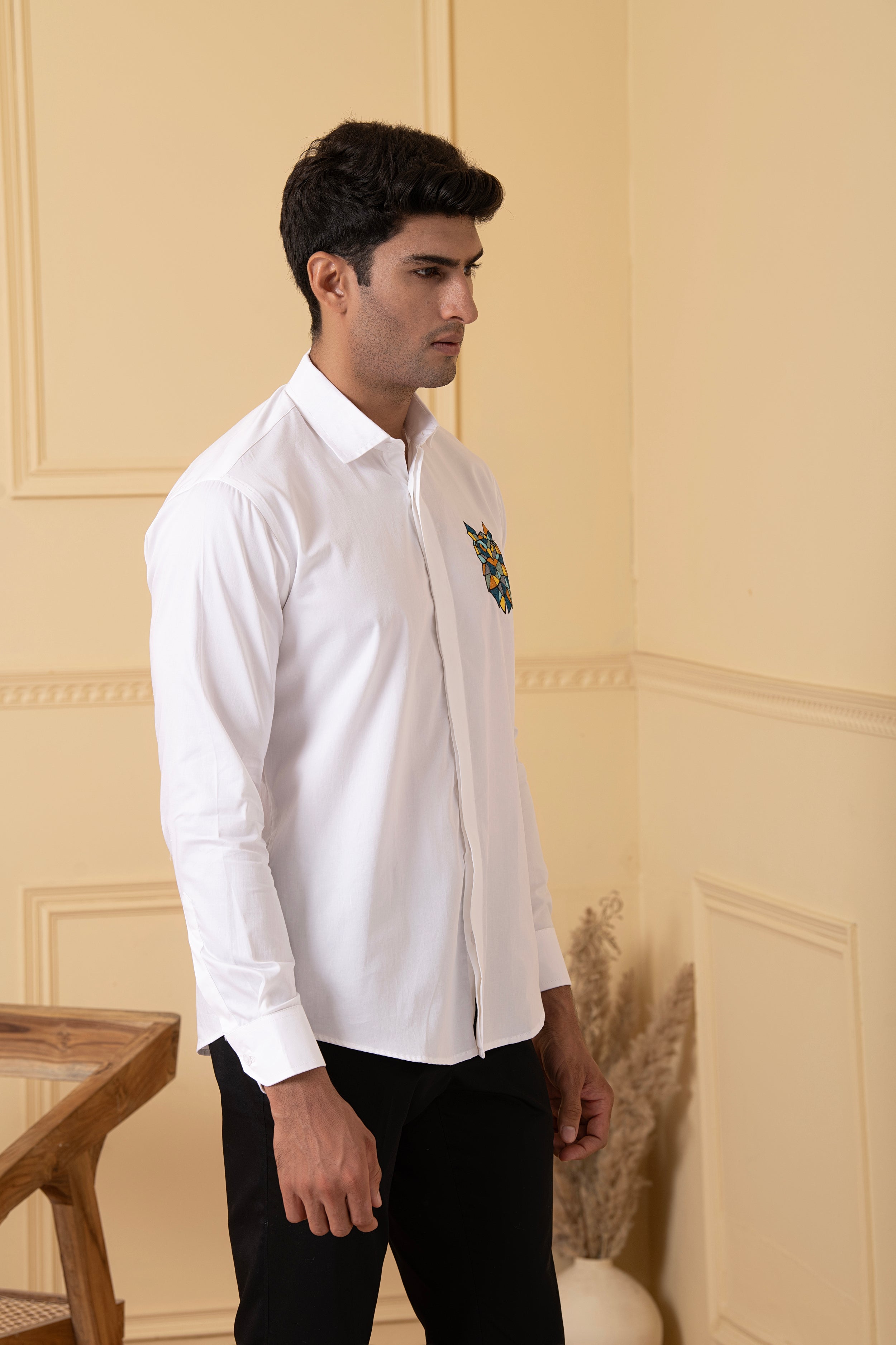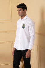 Adorned with intricate thread embroidery depicting majestic owls, this shirt seamlessly blends with modern fashion. The concealed buttons maintain a sleek appearance while allowing easy wear. Perfect for casual outings