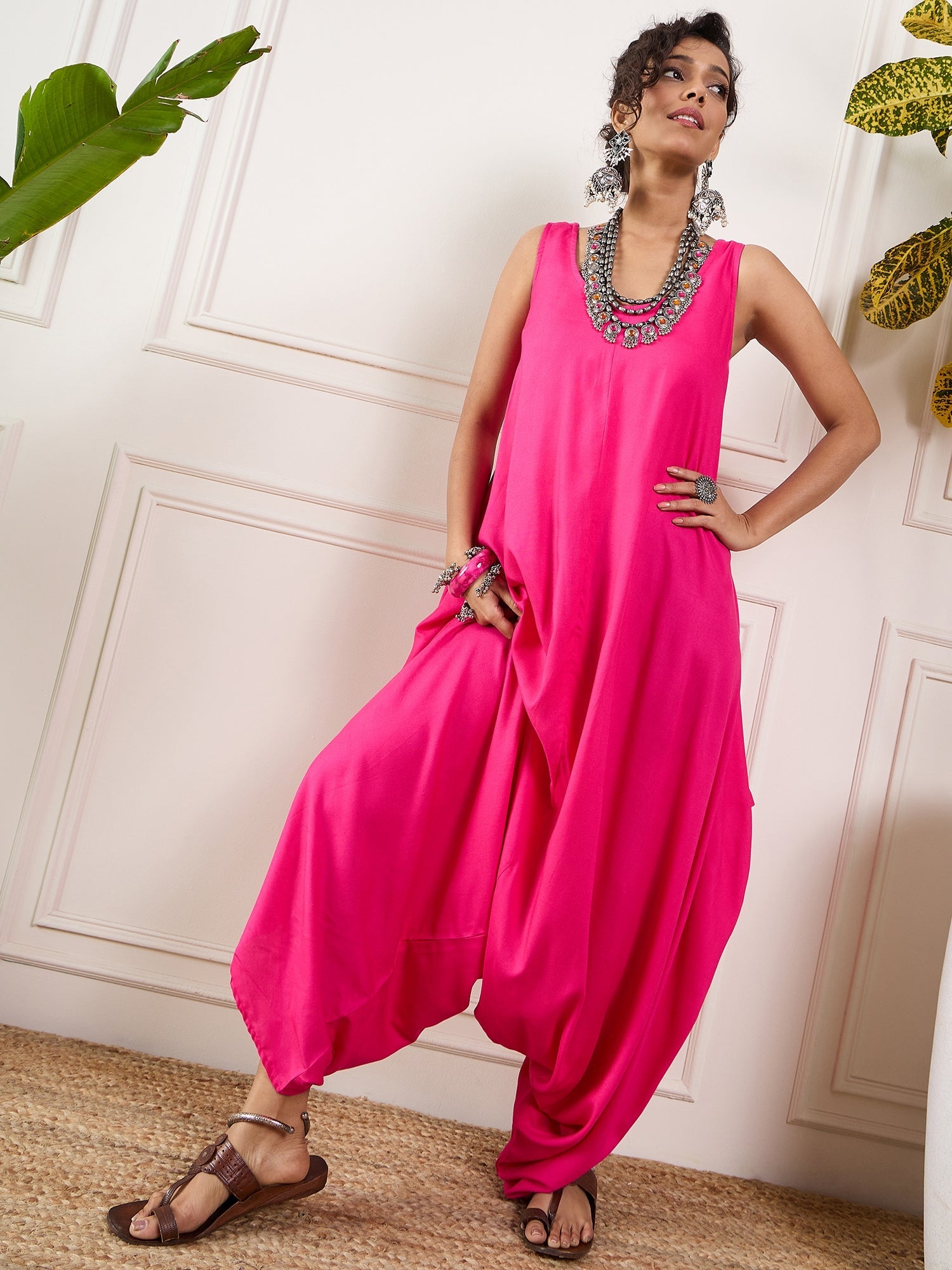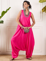 InWeave Pink Round Sleeveless JumpsuitThe Set is crafted from best of Indian fabrics. Style it with Oxidised jewelery and juttis and you are good t...
