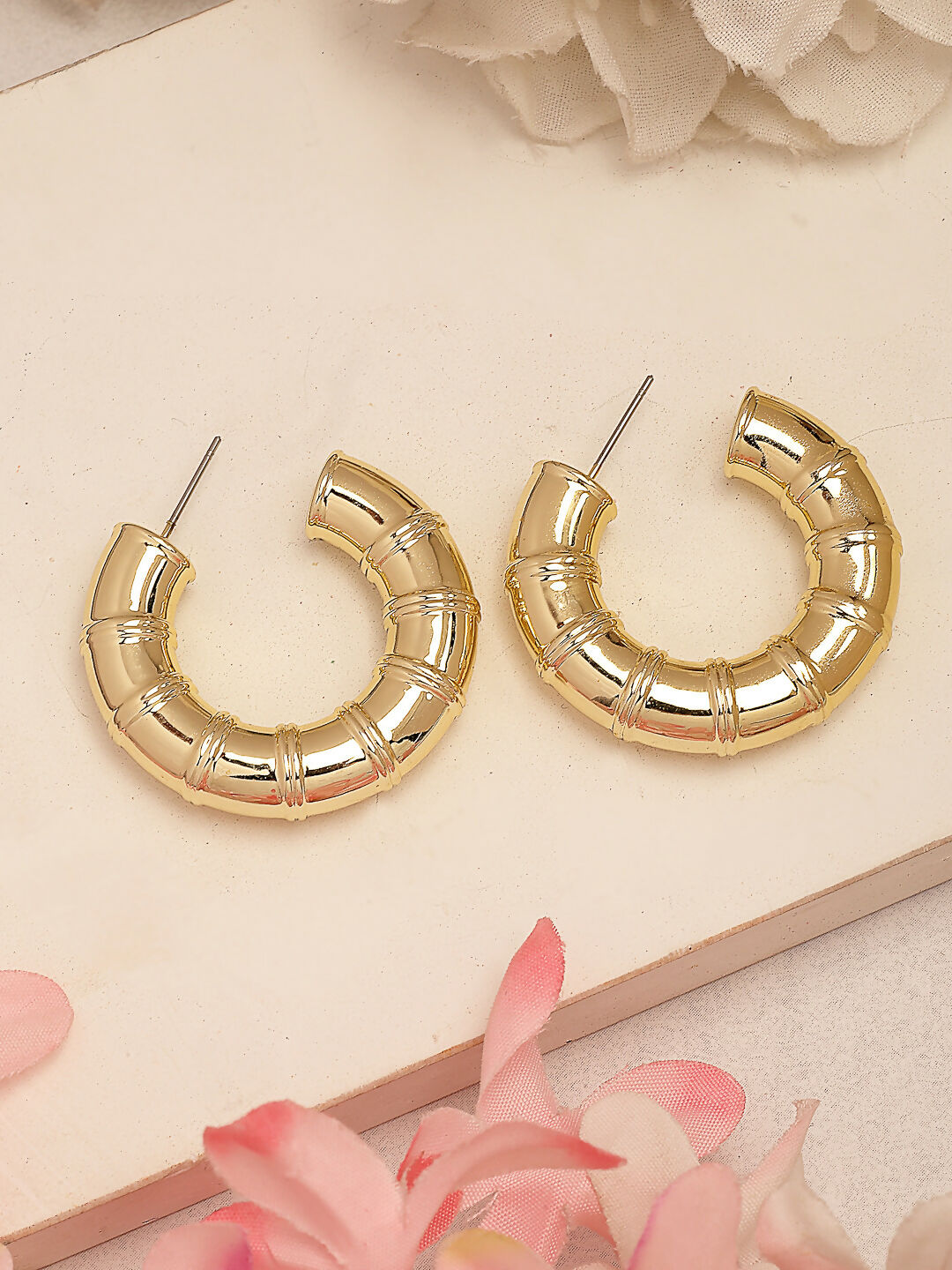 NVR Women's Gold-Polished Half Hoop Earrings