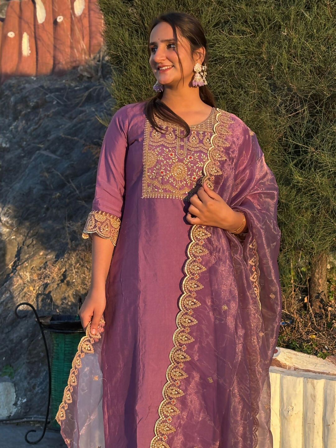 Vellora Dusty Mauve Silk Blend Stylish Embroidered Salwar Suit - S