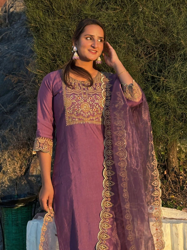 Vellora Dusty Mauve Silk Blend Stylish Embroidered Salwar Suit