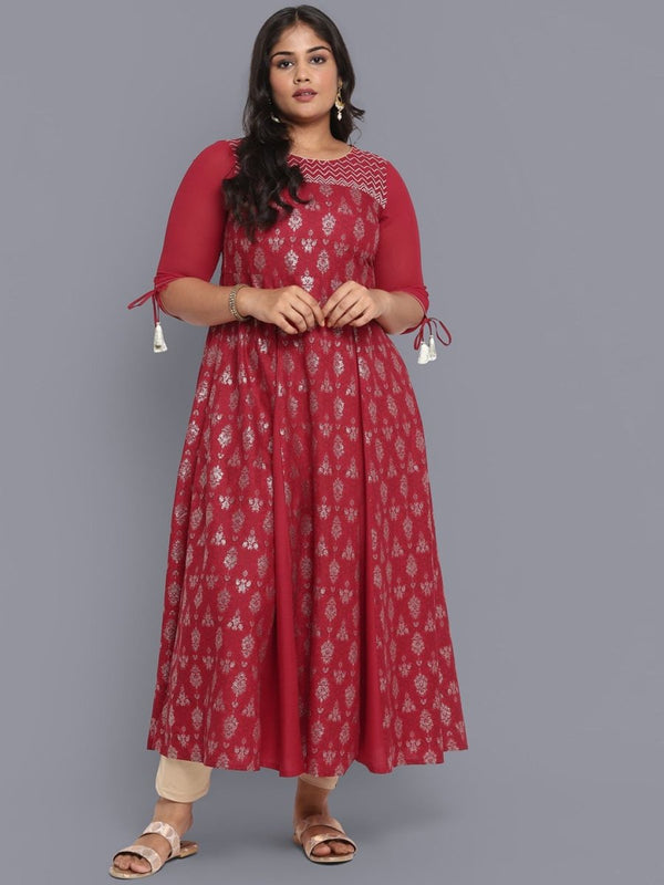 AURELIA Red Ethnic Motifs Midi Dress - Distacart