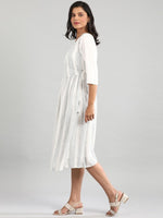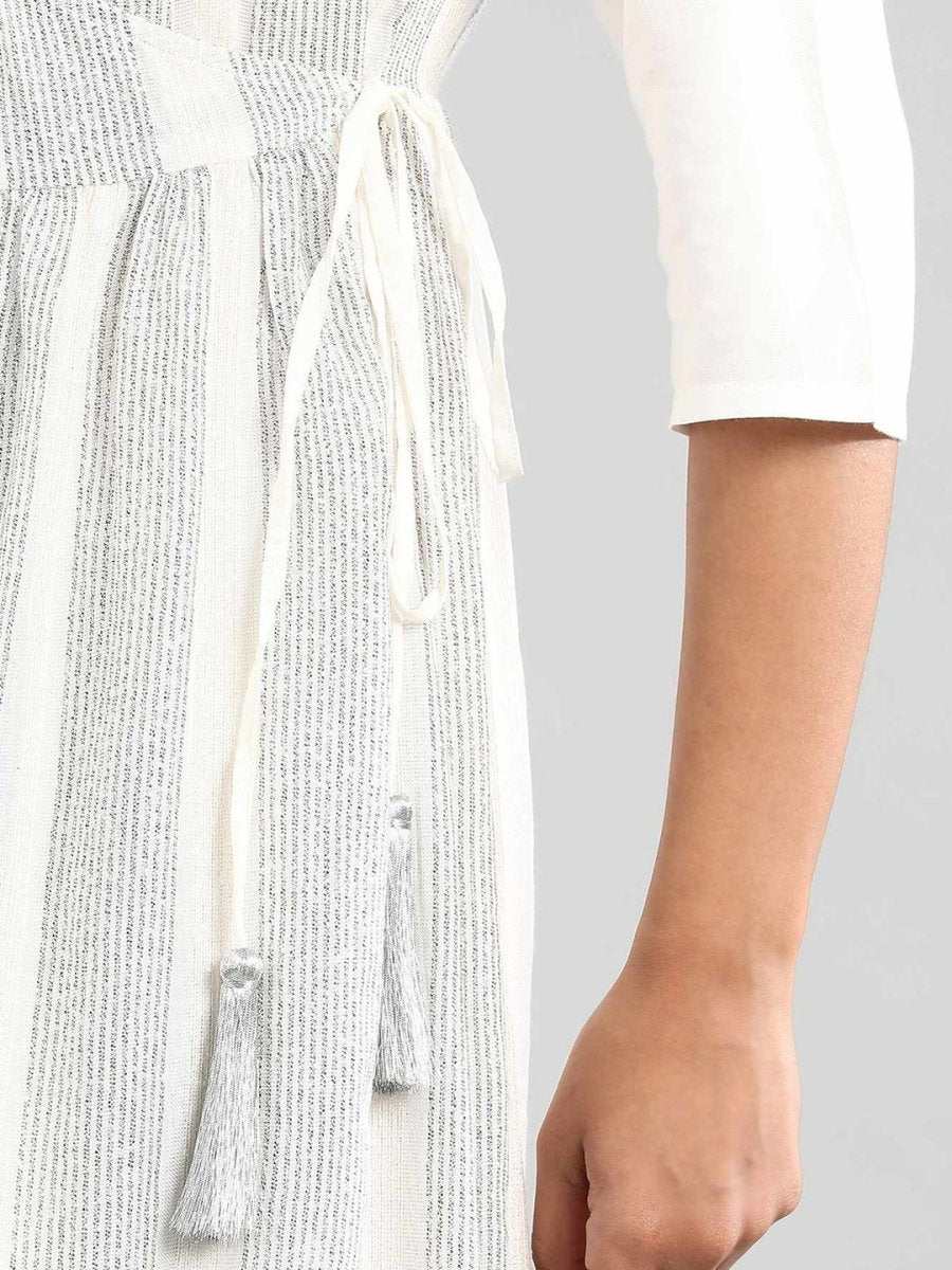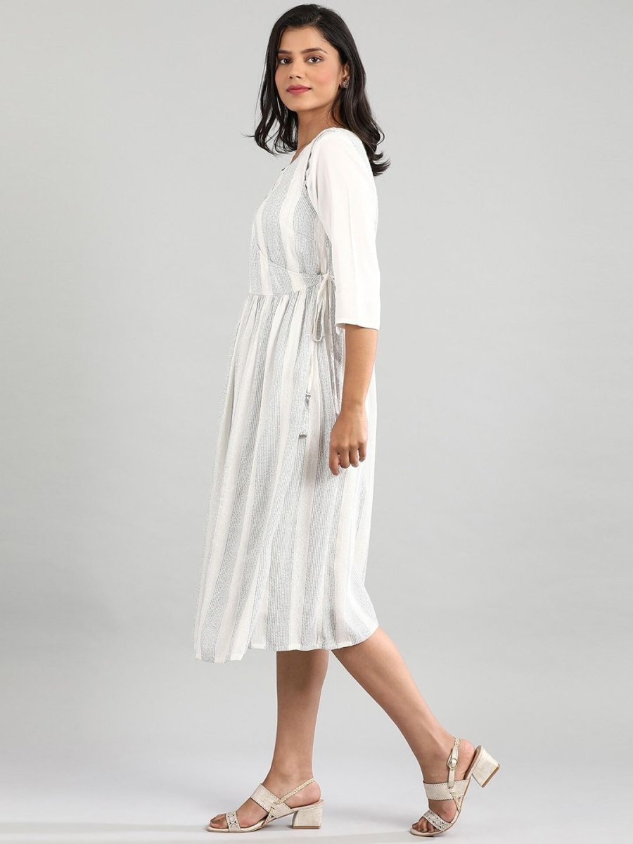 AURELIA White A-Line Midi Dress Product Details White striped solid a-line dress Round neck Three-quarter, regular sleeves Midi length...