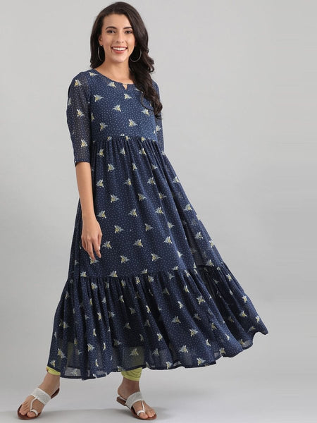 AURELIA Women Blue Printed Maxi Dress - Distacart