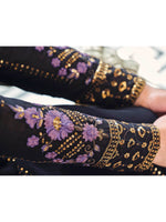 Dark Blue Real Georgette Gharara Suit features a real georgette top and bottom with georgette dupatta.Embroidery is completed with thread and sequins. This Style is made in India and checked by hand to ensure high quality.