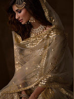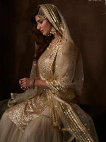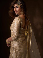 Dusky Beige Soft Net Gharara Suit features a soft net kameez,net dupatta. sequins embellishments are used for the embroidery of this style.