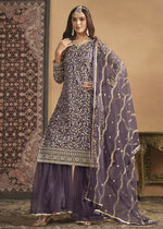 Net Dusty Purple Embroidered Festive Gharara Style Suit - Emponline