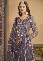 Net Dusty Purple Embroidered Festive Gharara Style Suit - Emponline - S