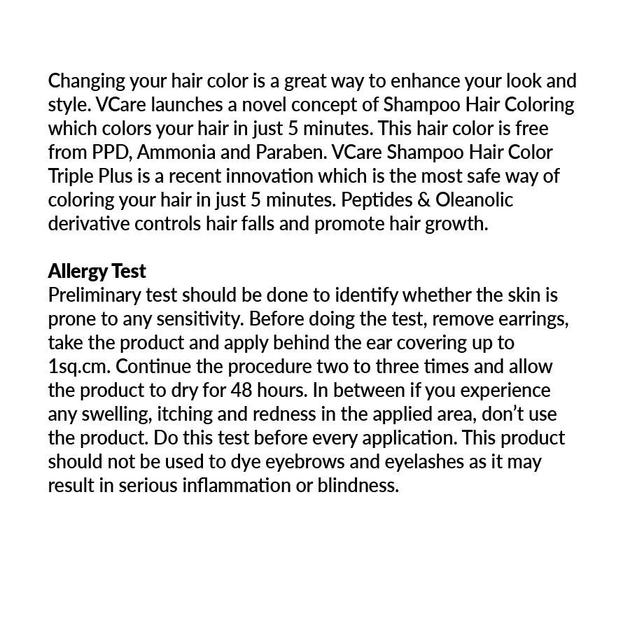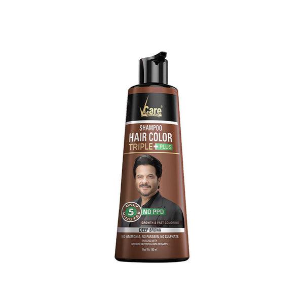 VCare Shampoo Hair Colour Triple Plus - Deep BrownDirections to Use: Take the required amount of shampoo. Apply on hair. Leave it for 5 minutes. Ri...