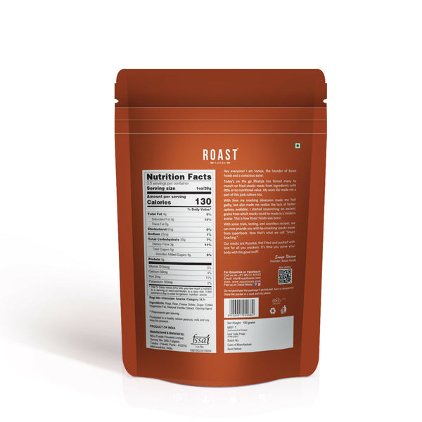 Roast Foods Ragi Stix ChocolateAbout the Product:Roasted Ragi Stix Coated with Chocolate Legal Disclaimer: Product images are for illustrative purp...