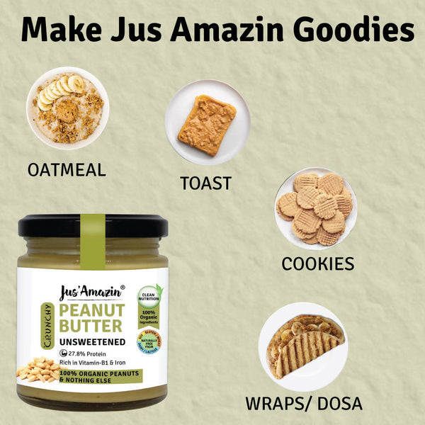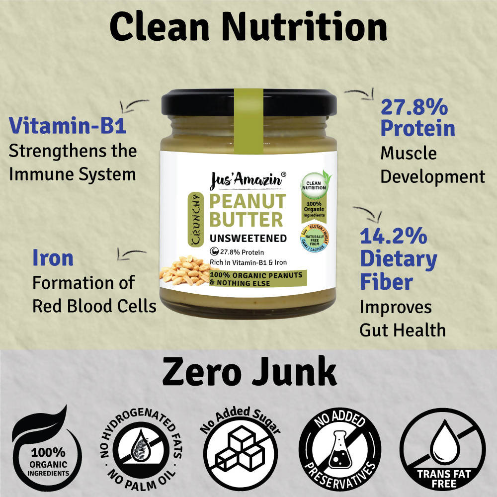 Jus Amazin Peanut Butter - UnsweetenedThis delicious Crunchy Peanut Butter (with 27.8% Protein) is made with 100% Certified Organic Peanuts and not...