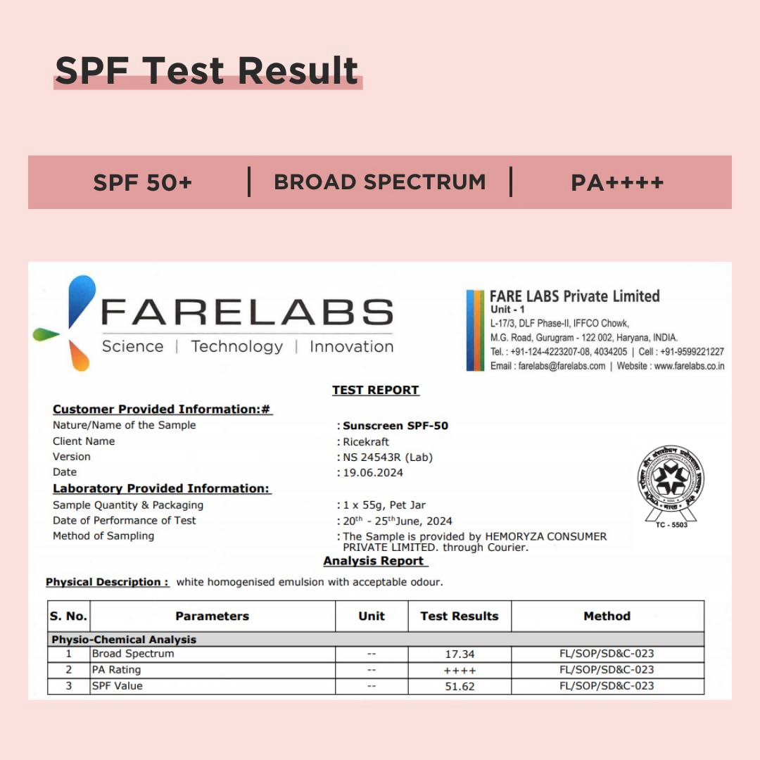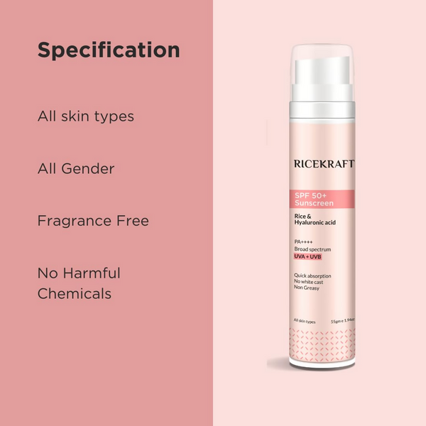 Ricekraft SPF 50+ Korean SunscreenAbout the product: The sunscreen is inspired from Korean beauty secrets and crafted to suit the Indian skin type ...