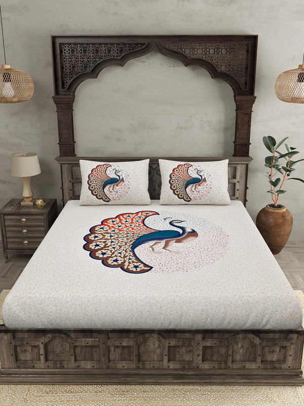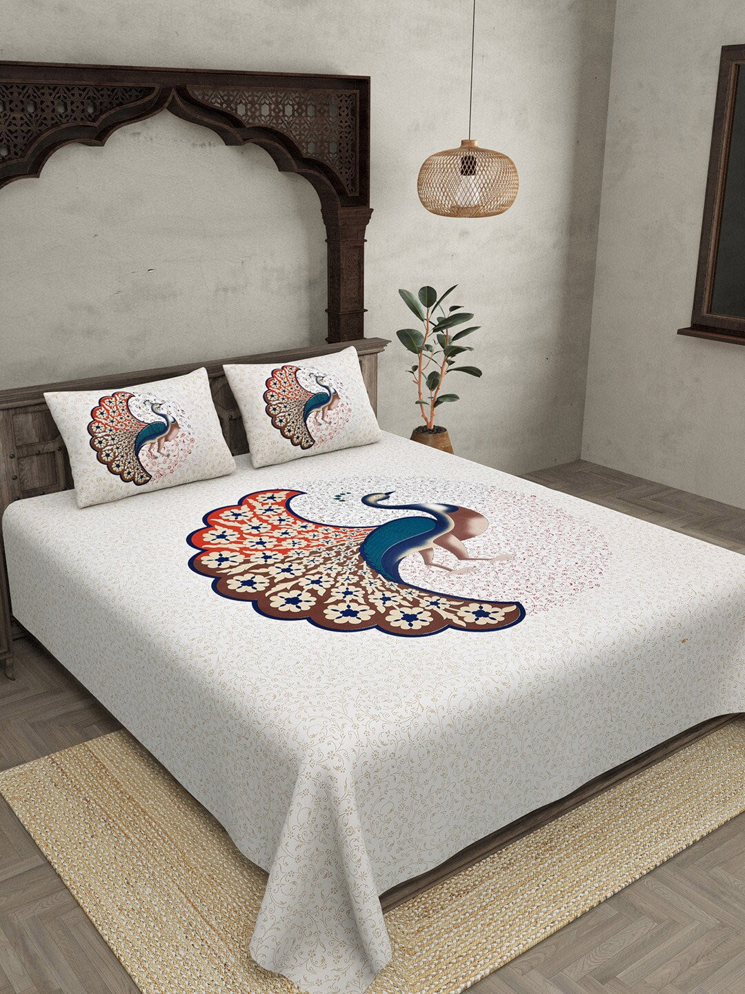 JAIPUR FABRIC Off White & Red Printed 240 TC Cotton King Bedsheet with 2 Pillow Covers - Distacart