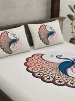 JAIPUR FABRIC Off White & Red Printed 240 TC Cotton King Bedsheet with 2 Pillow Covers