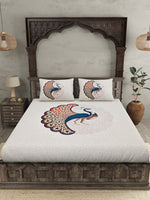 JAIPUR FABRIC Off White & Red Printed 240 TC Cotton King Bedsheet with 2 Pillow Covers - Double King