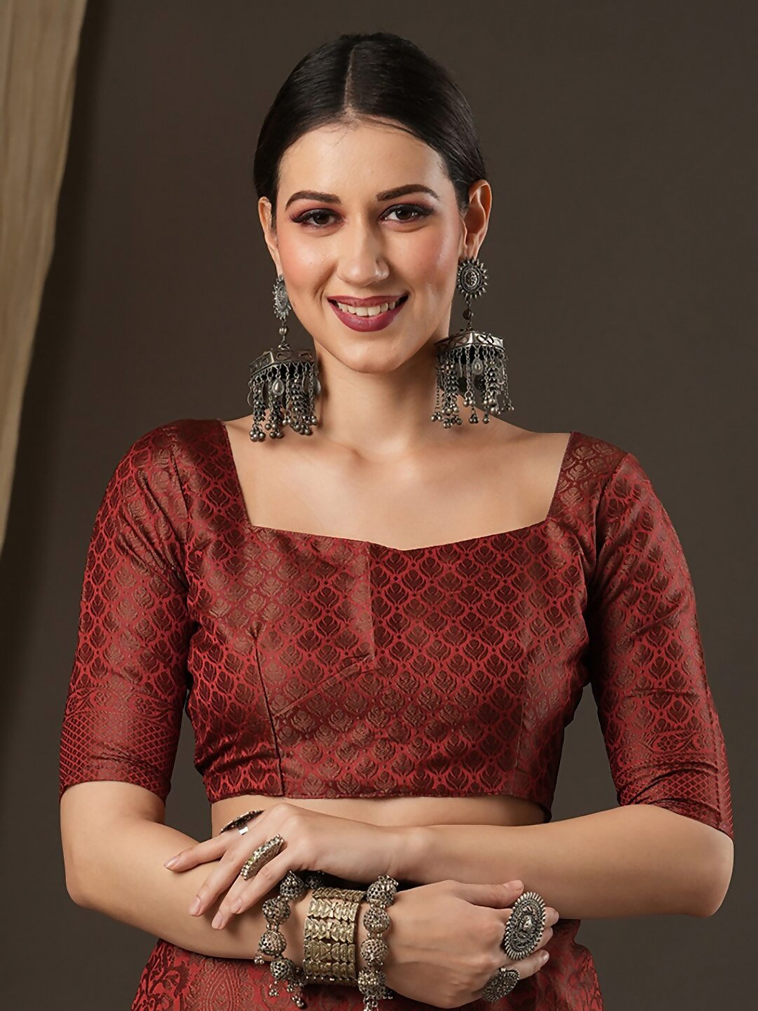 • Maroon banarasi saree