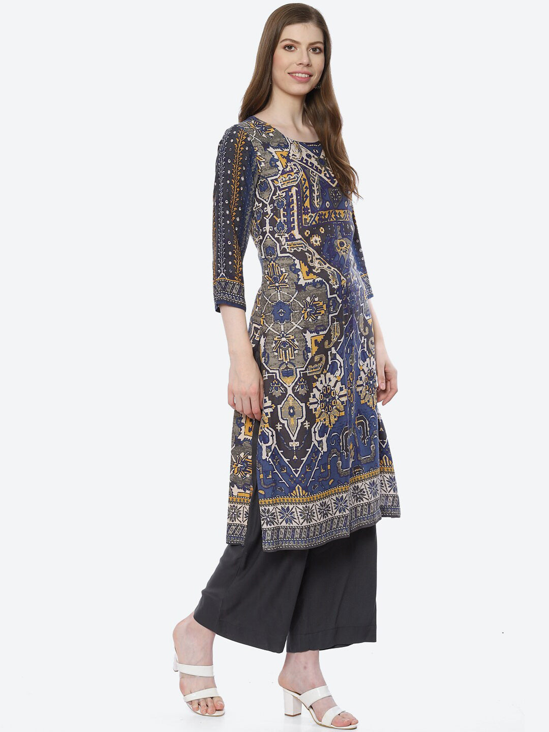 Biba Women Blue Printed Kurta with Palazzos & With Dupatta Product Details Blue printed Kurta with Palazzos with dupatta Kurta design: ...